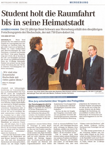 Zeitungsartikel aus der Mitteldeutschen Zeitung, Ausgabe vom 27.11.2009.