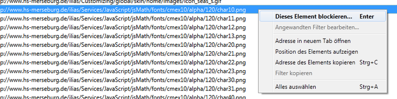 Screenshot: Auswählen blockierbarer Elemente in Abblock Plus