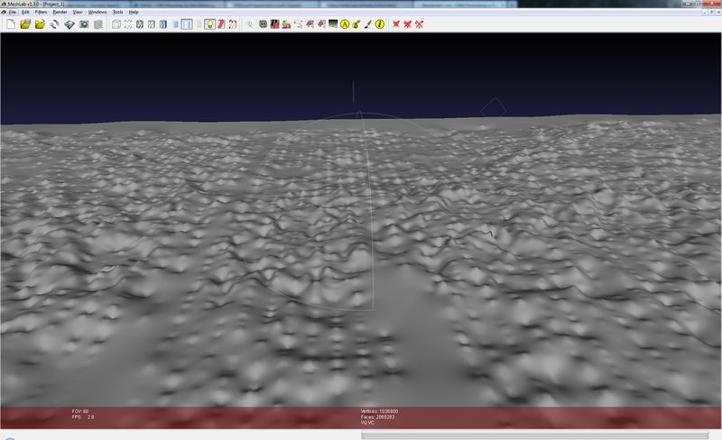 A 3D model of the Moon's surface topography, meshed in MeshLab.